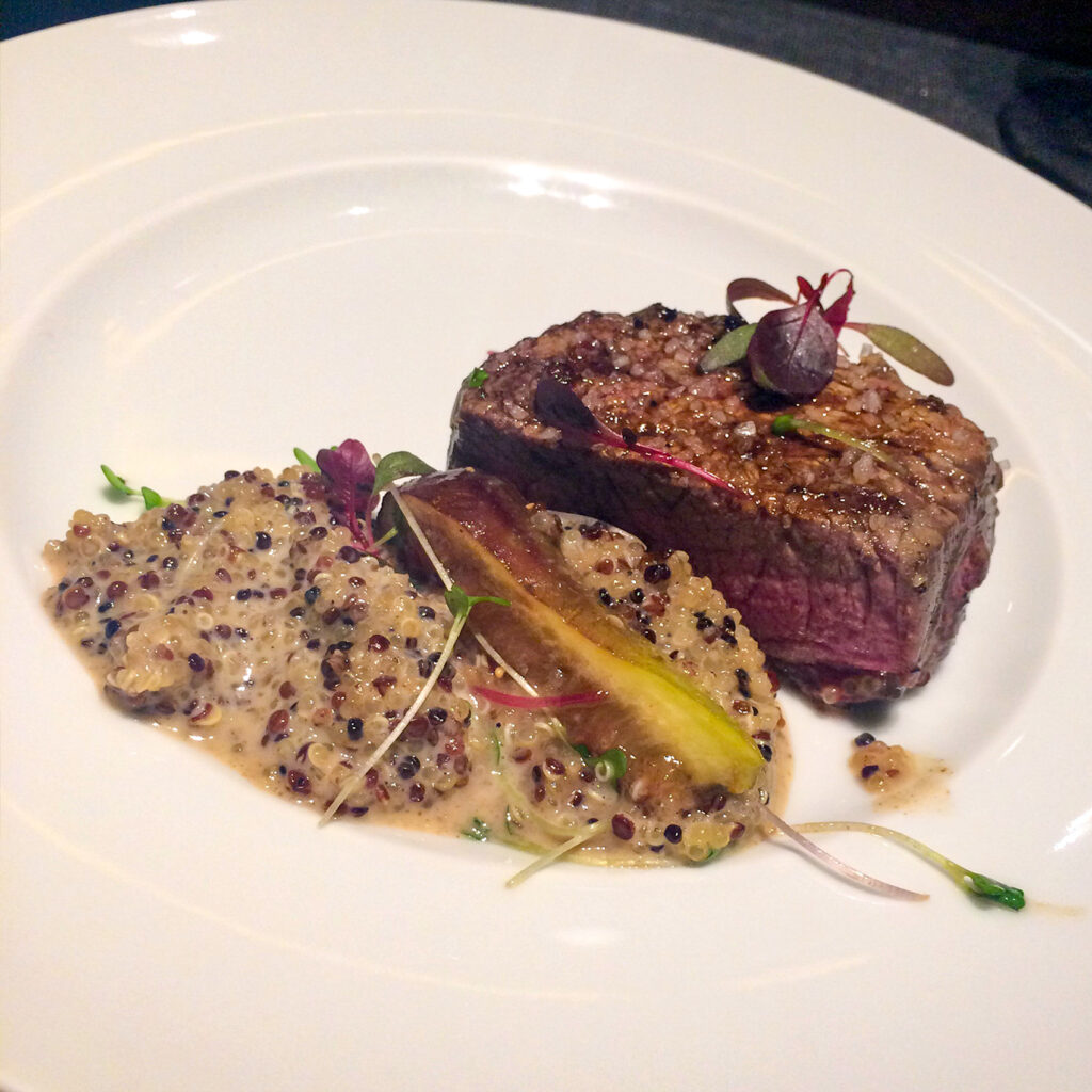 キノットは、キヌアを使ったリゾット。ヒレ肉のグリルとイチヂクの葉のシロップ風味。