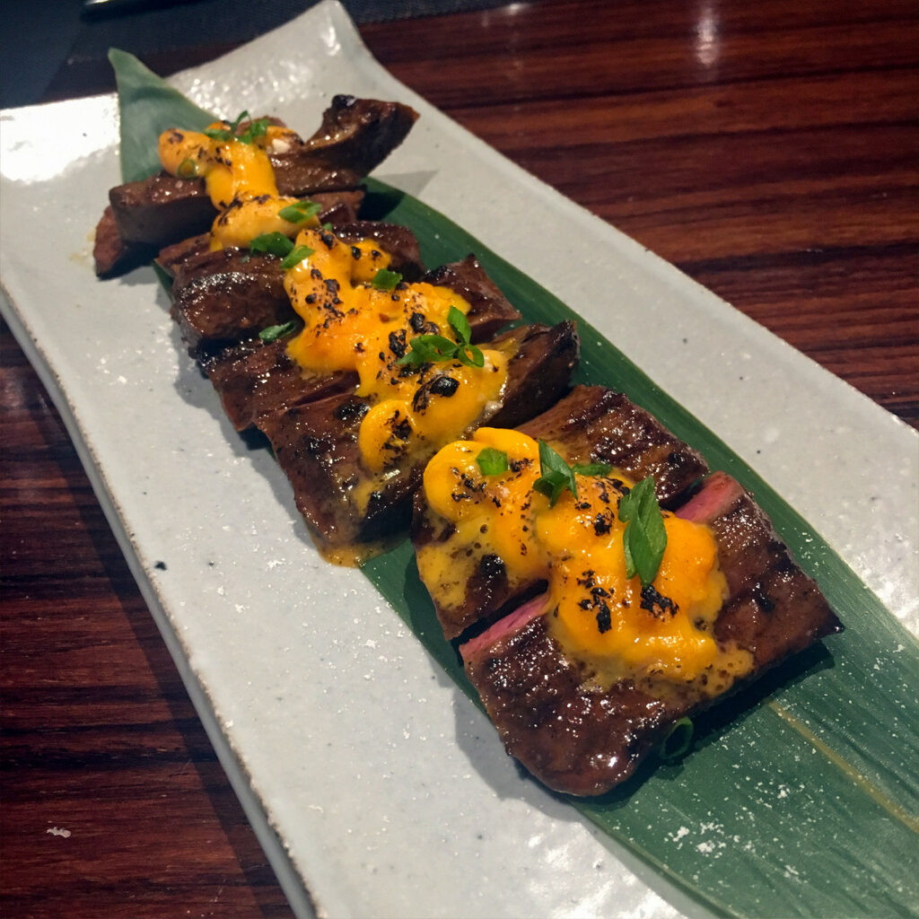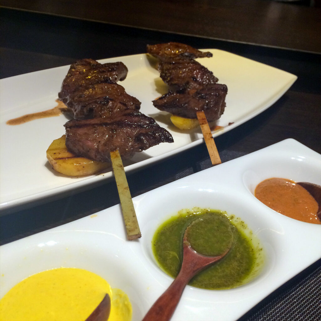 アンティクーチョ(Anticucho de corazon con erizo de mar)