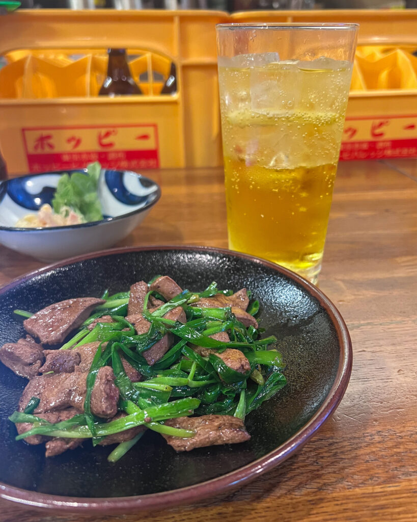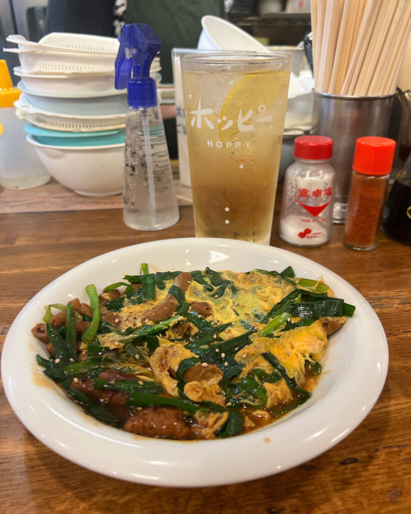 にら玉ホルモン。魚貝に飽きて、濃い味がほしいときに。肉系もたくさんある。