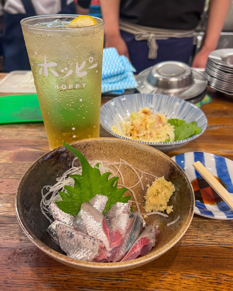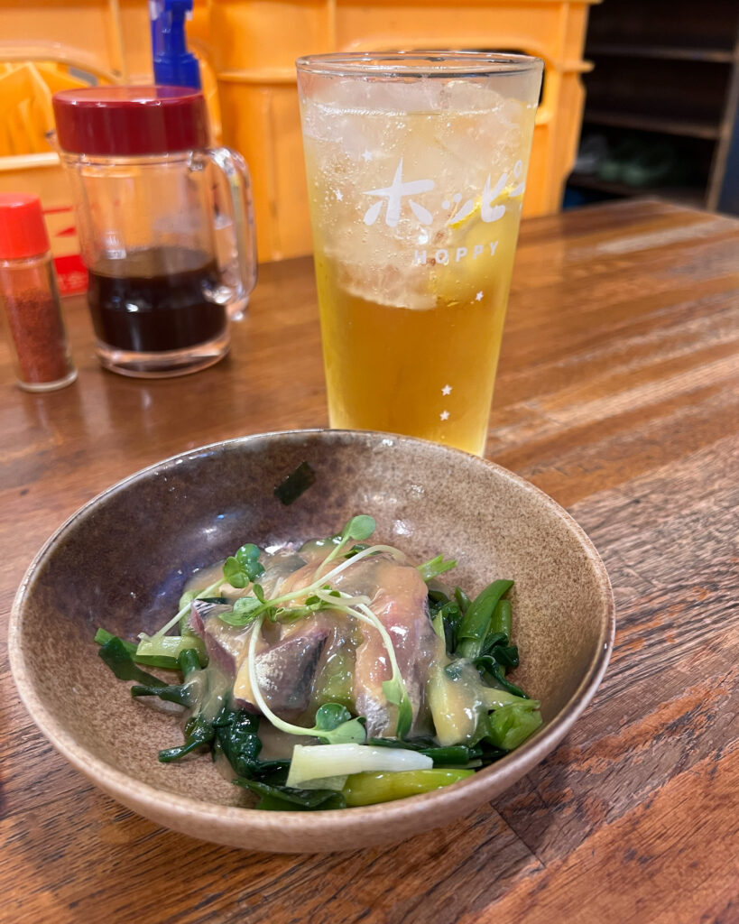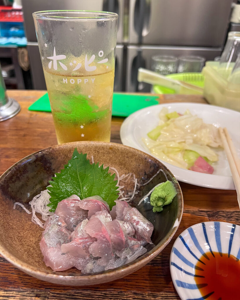 横須賀中央には「ぎんじ」という渋い老舗酒場があって、こちらも人気があります。どちらも独酌向きですが、好みは分かれそう。