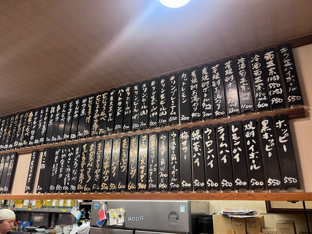 メニューその2。ほかに、その日のおすすめ白板がある。主に刺身。