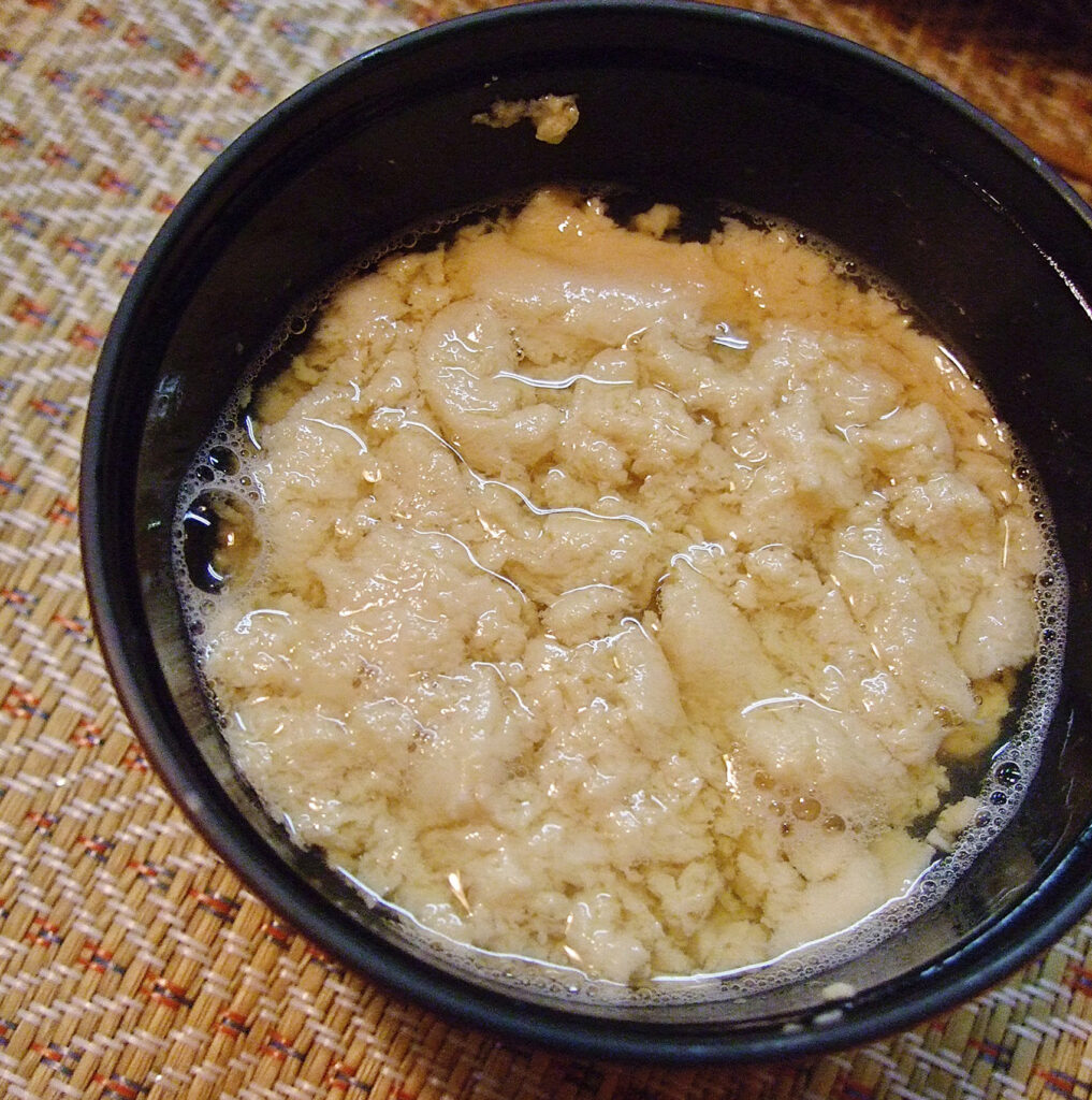 売り物にならない蟹を殻ごと潰して何度も濾すと現れる、白いふわふわ。
