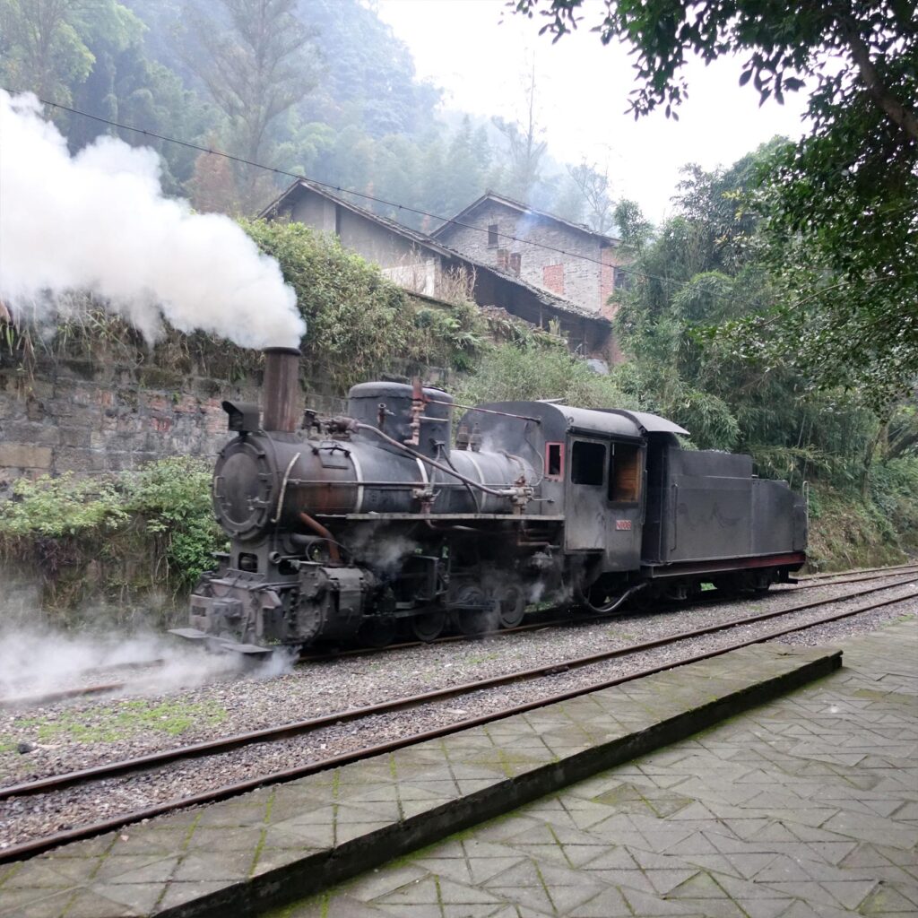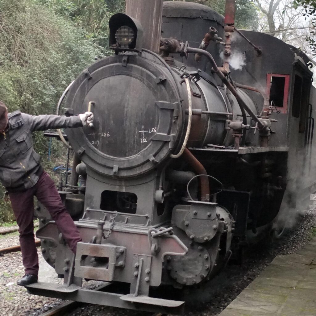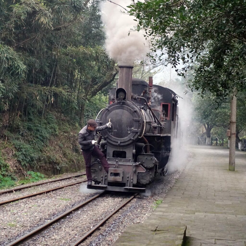 四川旅行のメインイベント、芭石鉄路 (嘉阳小火车)で蒸気+客車に乗りました。wikiの表記だと「嘉陽炭鉱鉄道」(Jiayang Coal Railway)。(2017年12月)