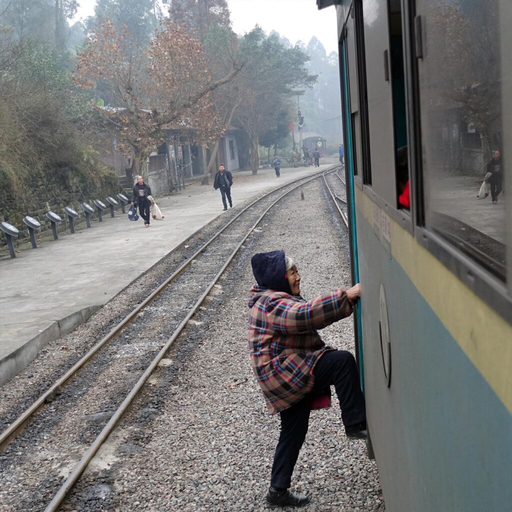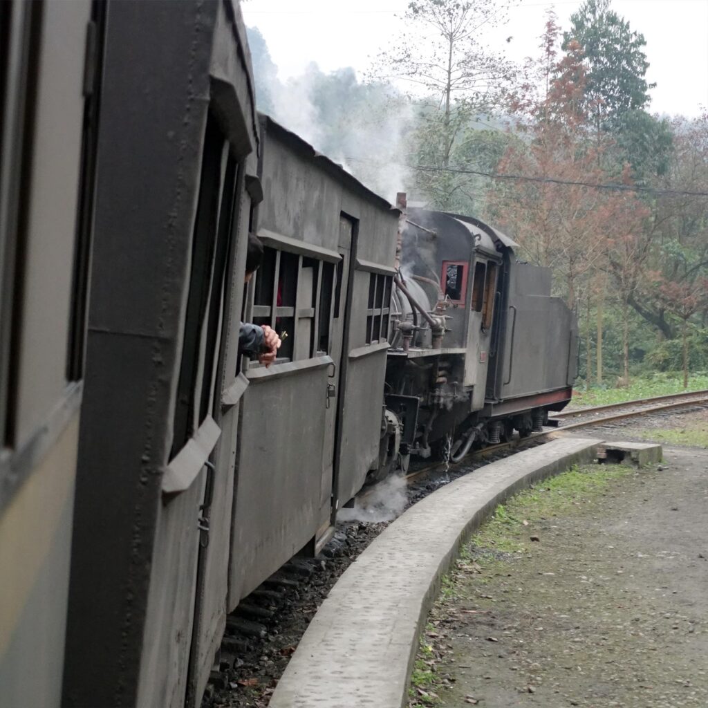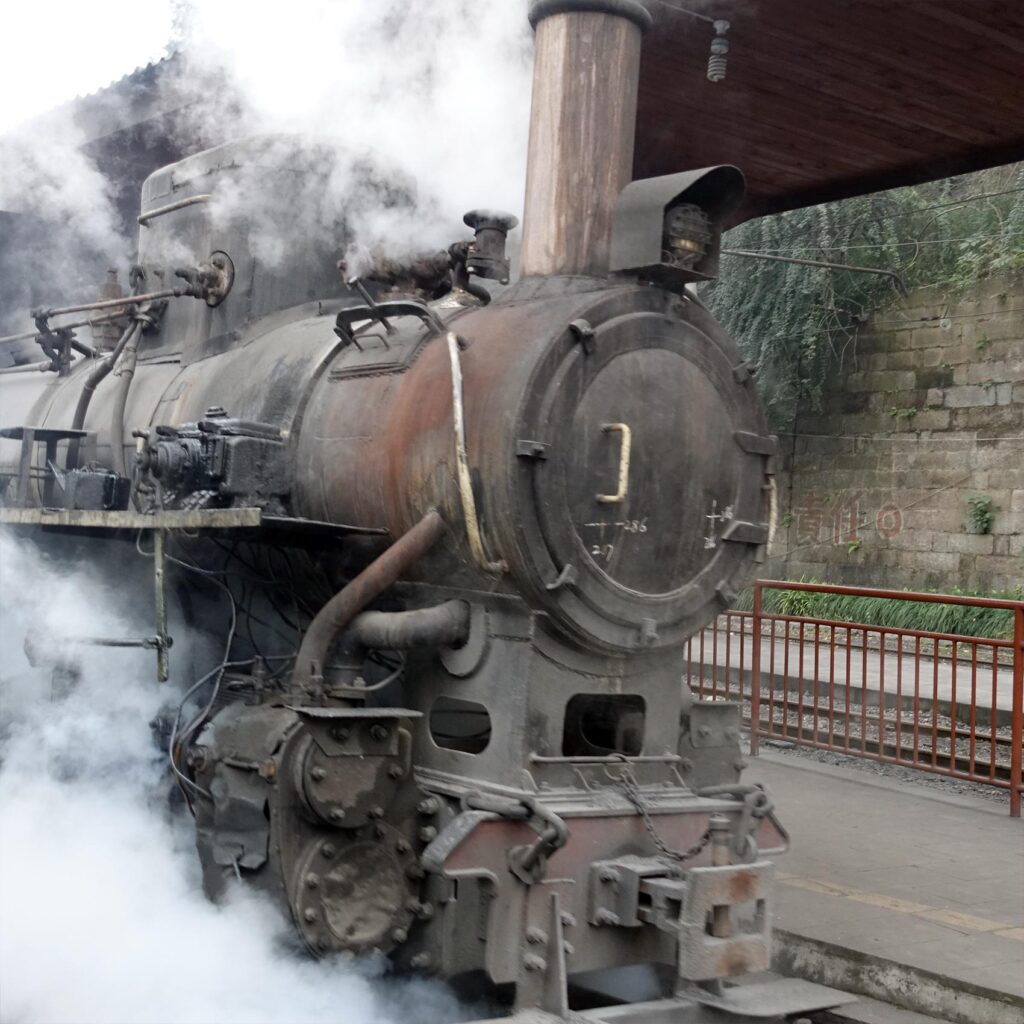 四川旅行のメインイベント、芭石鉄路 (嘉阳小火车)で蒸気+客車に乗りました。wikiの表記だと「嘉陽炭鉱鉄道」(Jiayang Coal Railway)。(2017年12月)