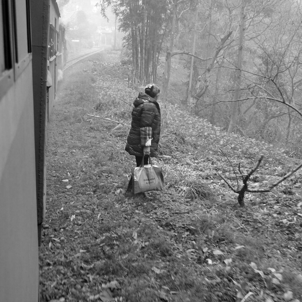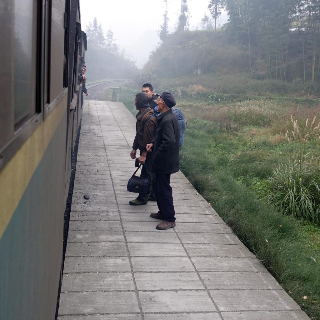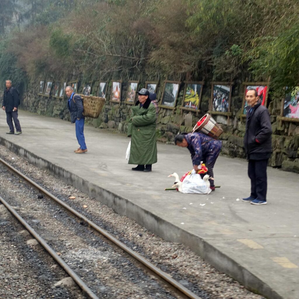 蕉坝站。復路に乗る地元の方々。観光列車を除くと朝夕1往復ずつしかない。