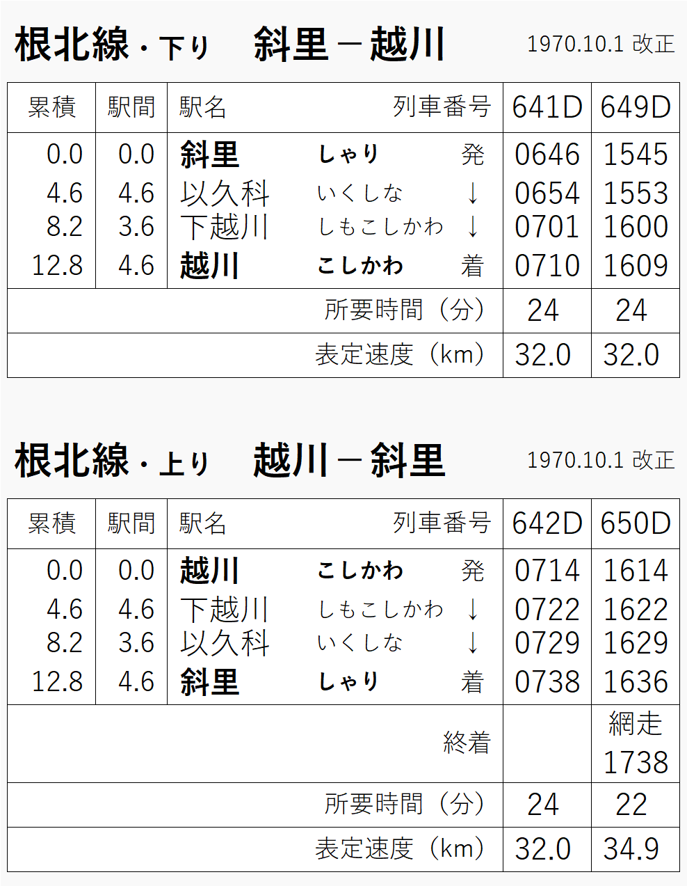 時刻表は1970年10月改正のもの。2往復!