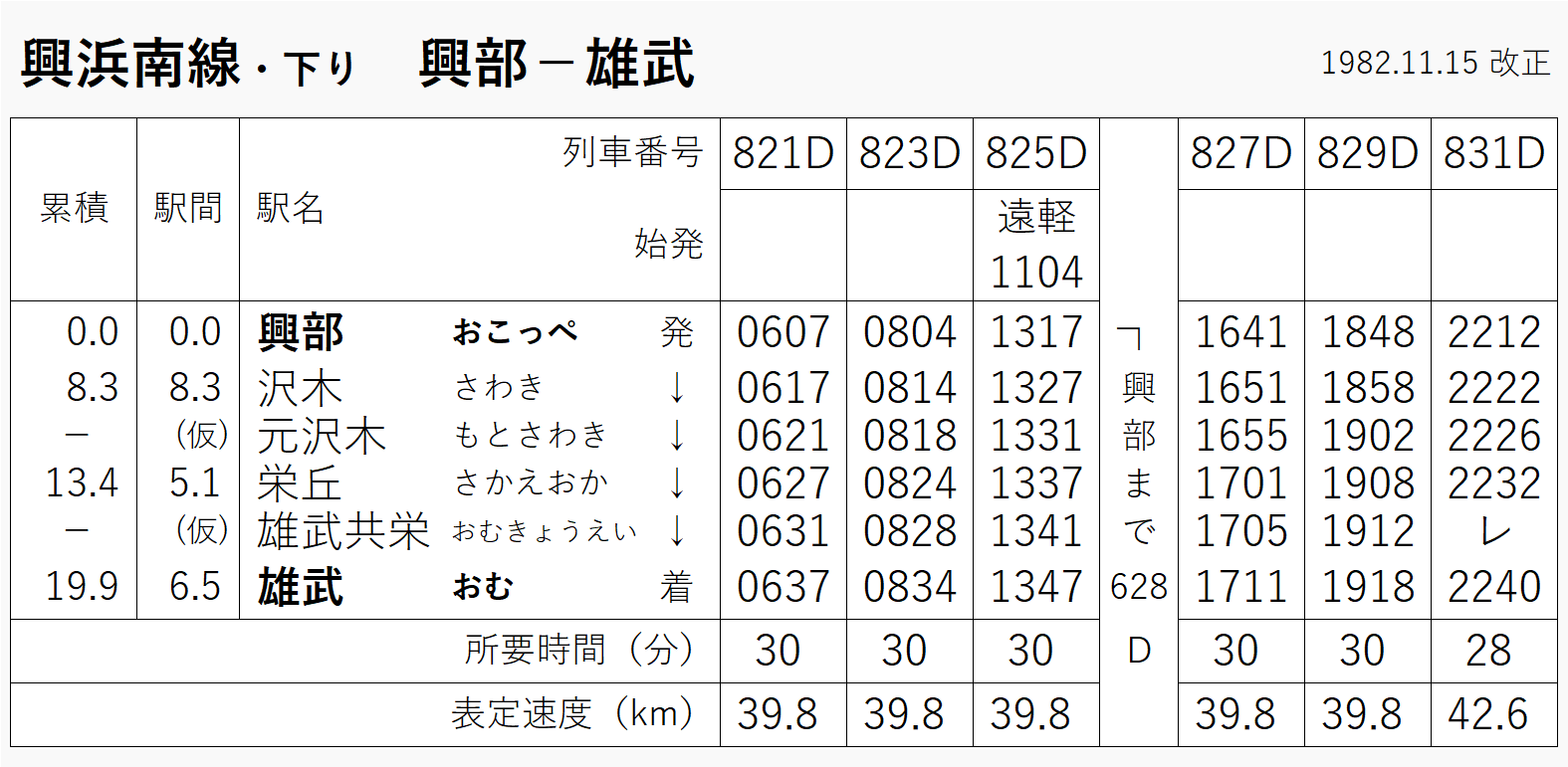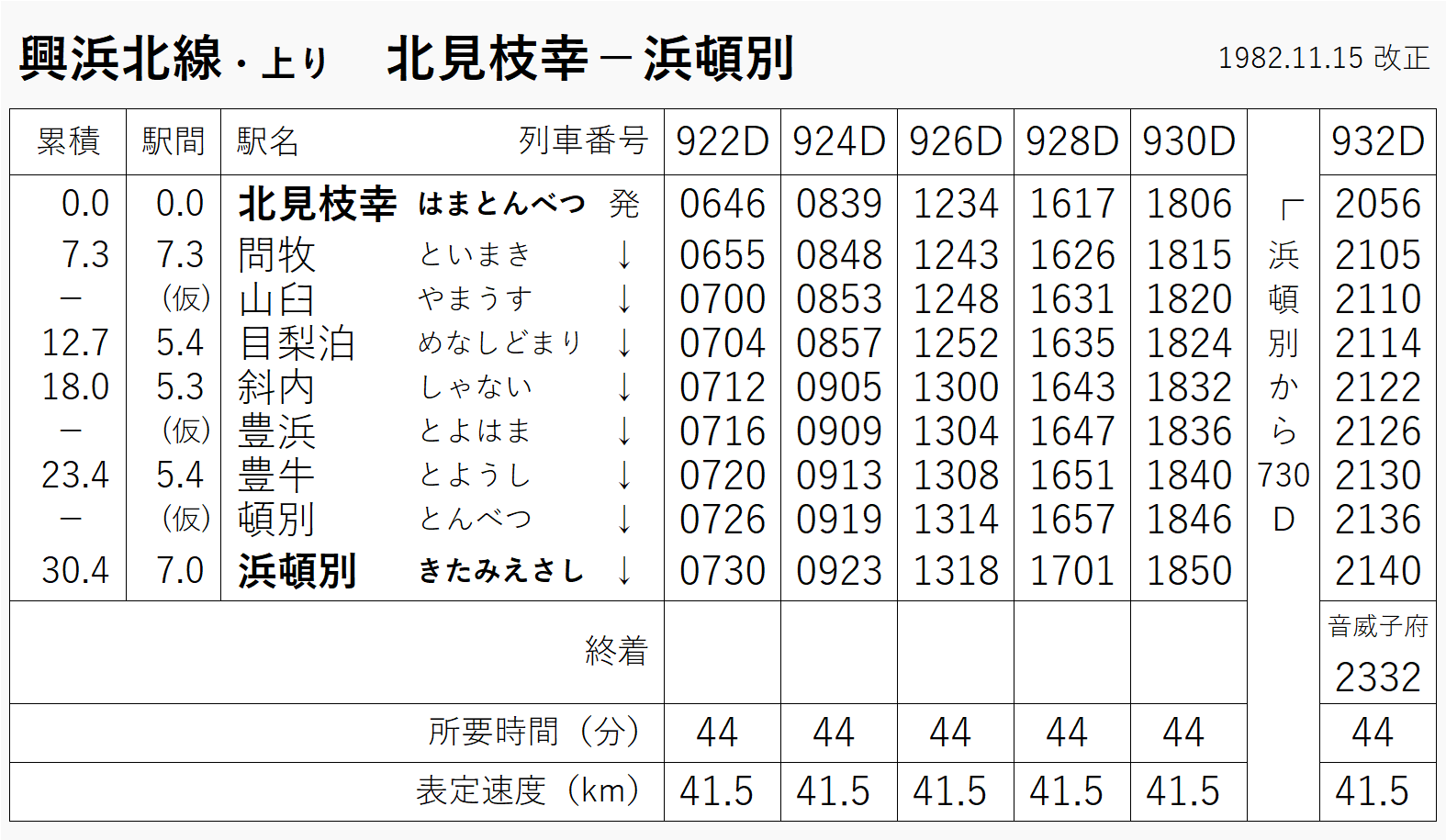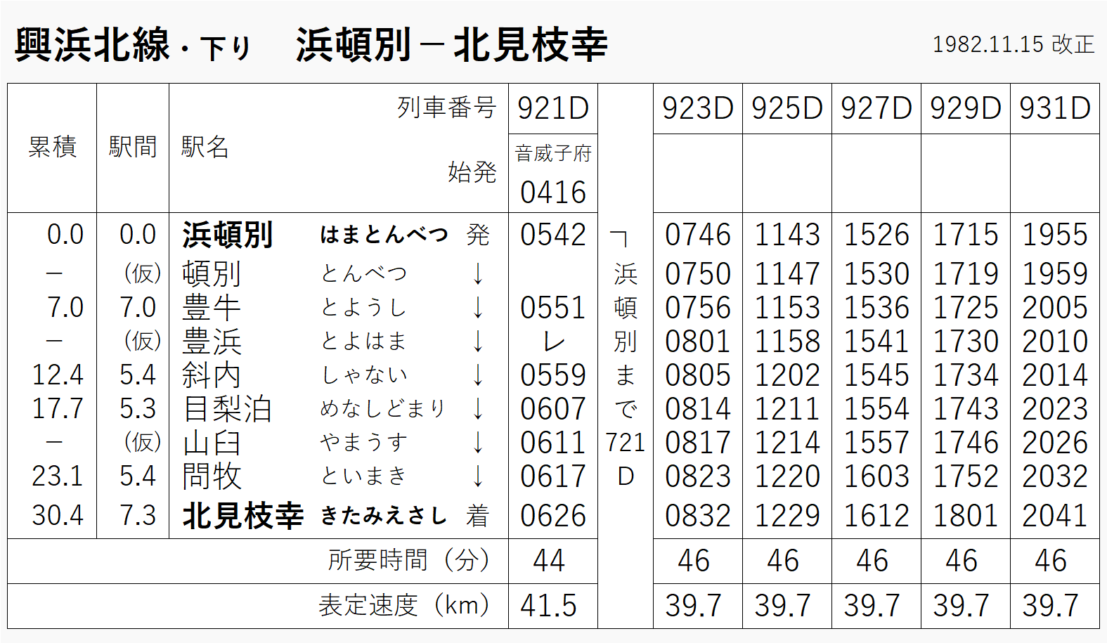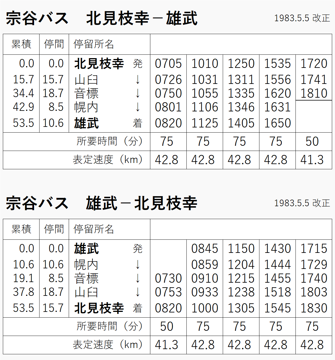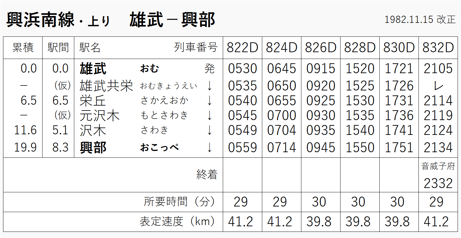 1983年(時刻表は1982年・切り貼り)当時は6往復。1970年版も確認したけど、ほとんど同じダイヤだった。仮乗降場が3つある。