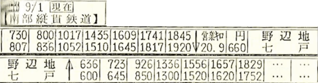よく見ると1ヵ所だけ列車交換が発生してる(16:09野辺地発と16:20七戸発)。wikiによると1984年以降は5往復になり、交換していない模様。
