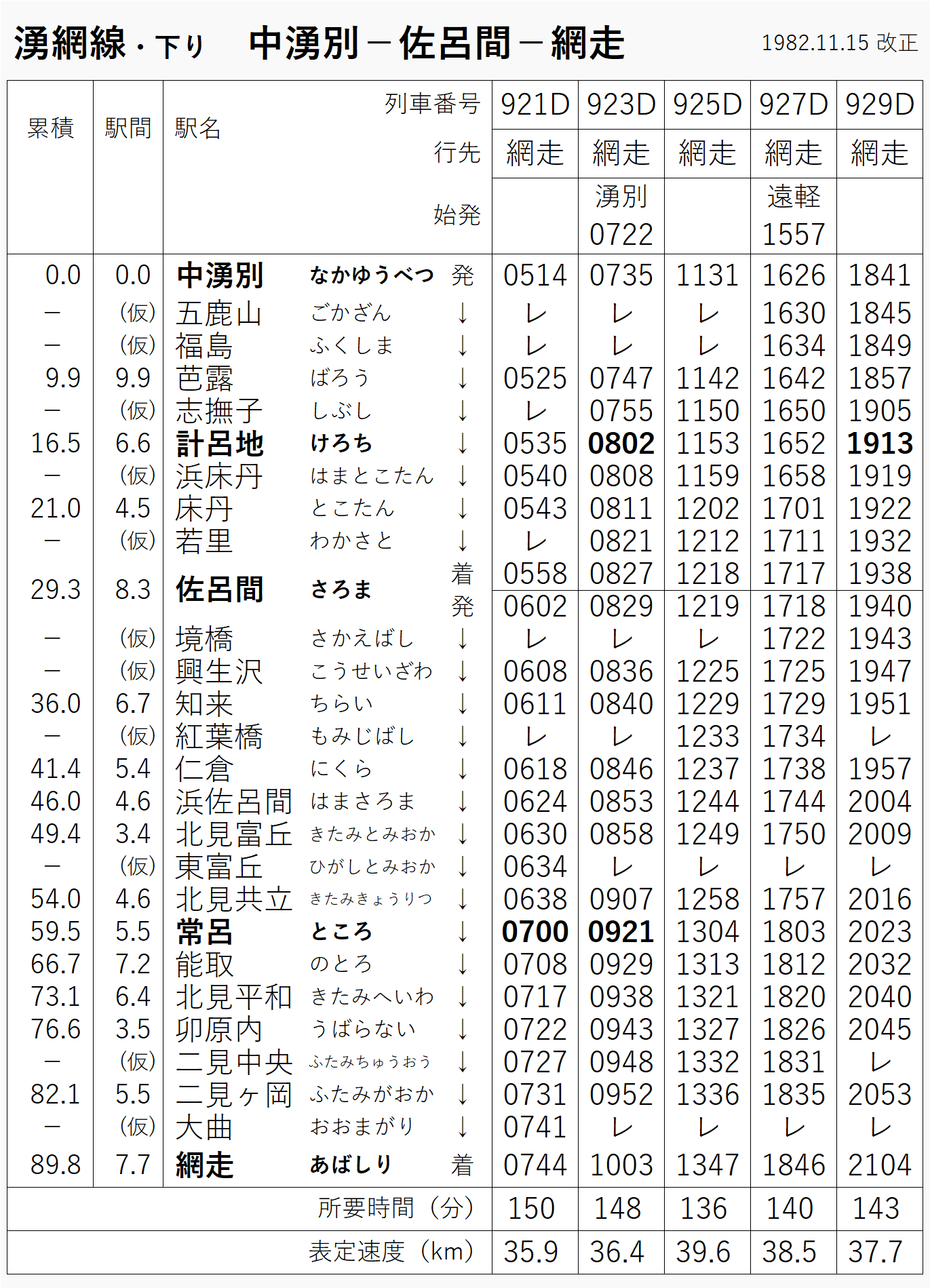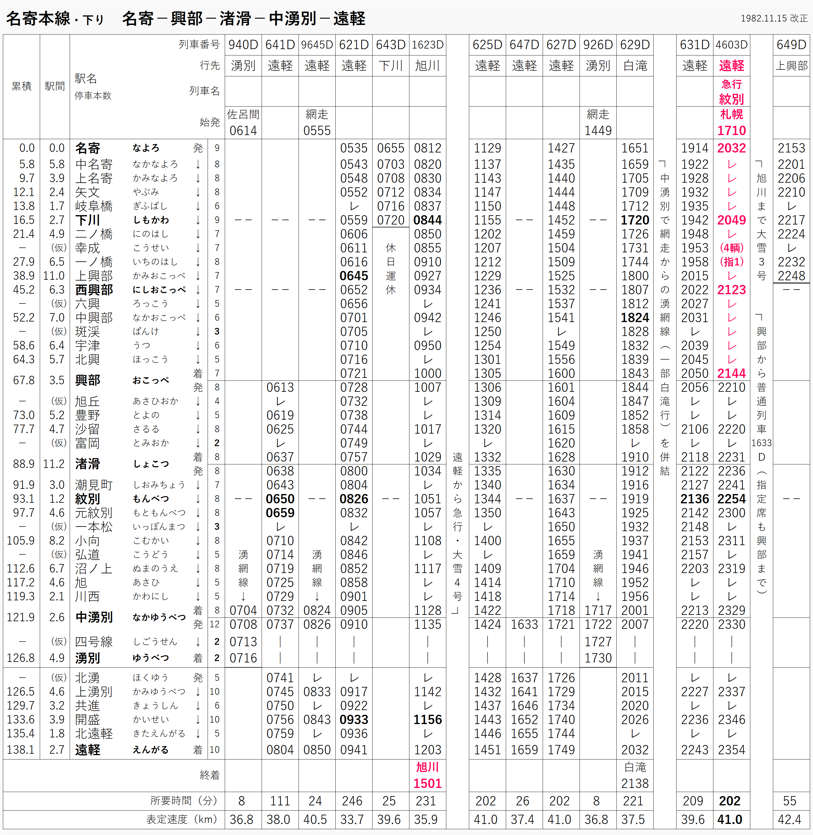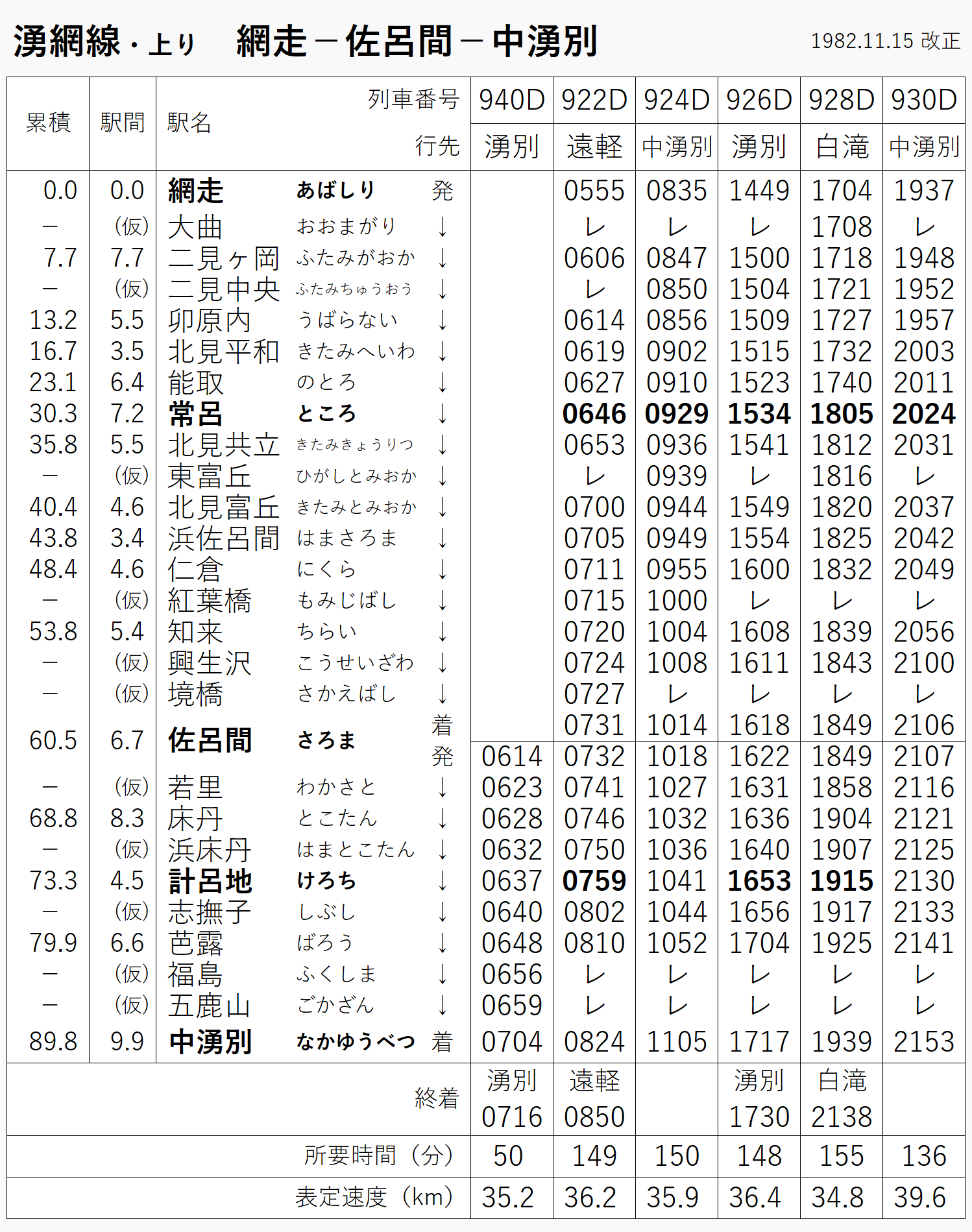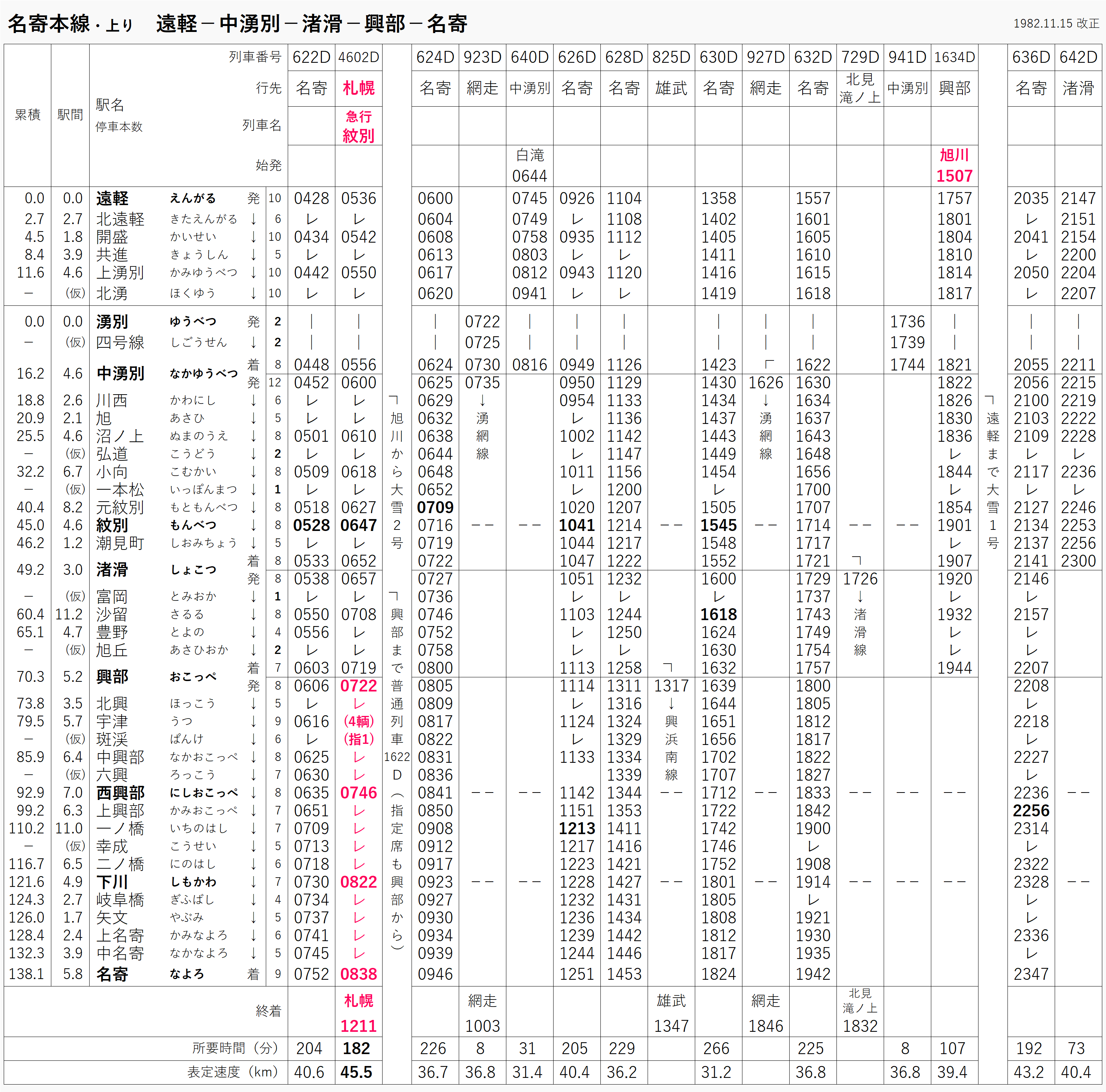 1983年の道内時刻表。