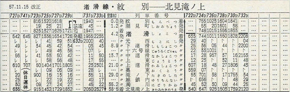 1983年。渚滑6:45発の休日運休便が目立ちますね(1970年版では途中普通に停車してます)。