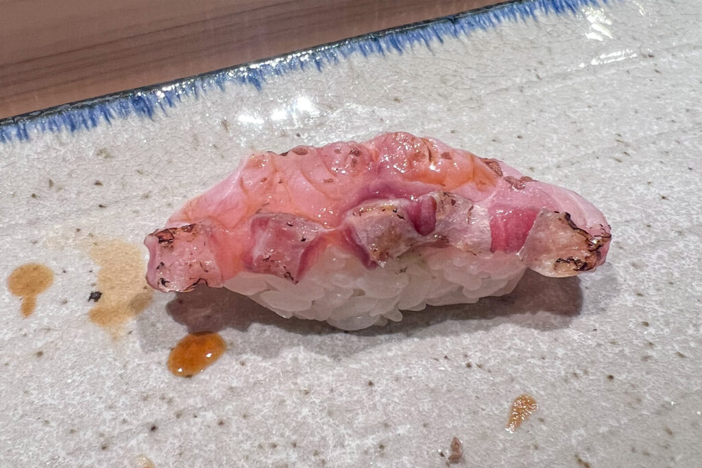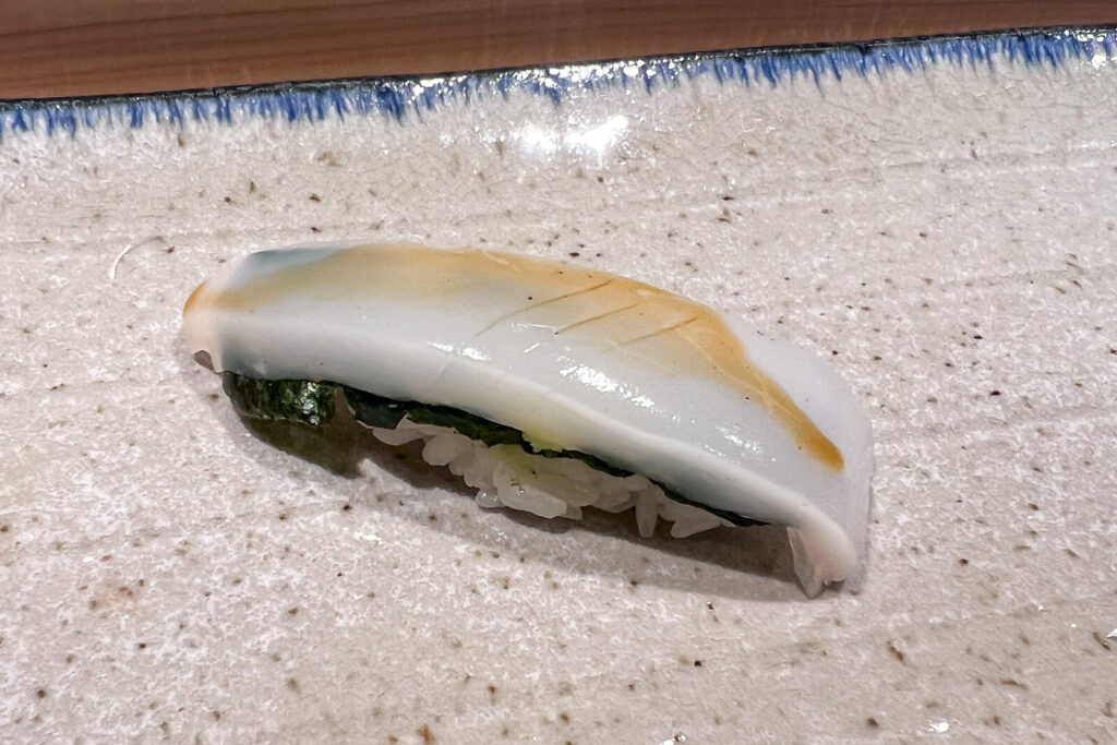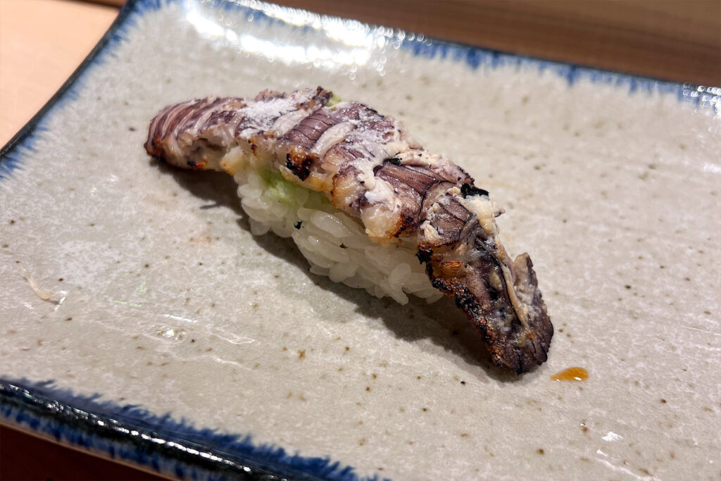 烏賊。ゲソ焼きからの、海苔つきでにぎり。